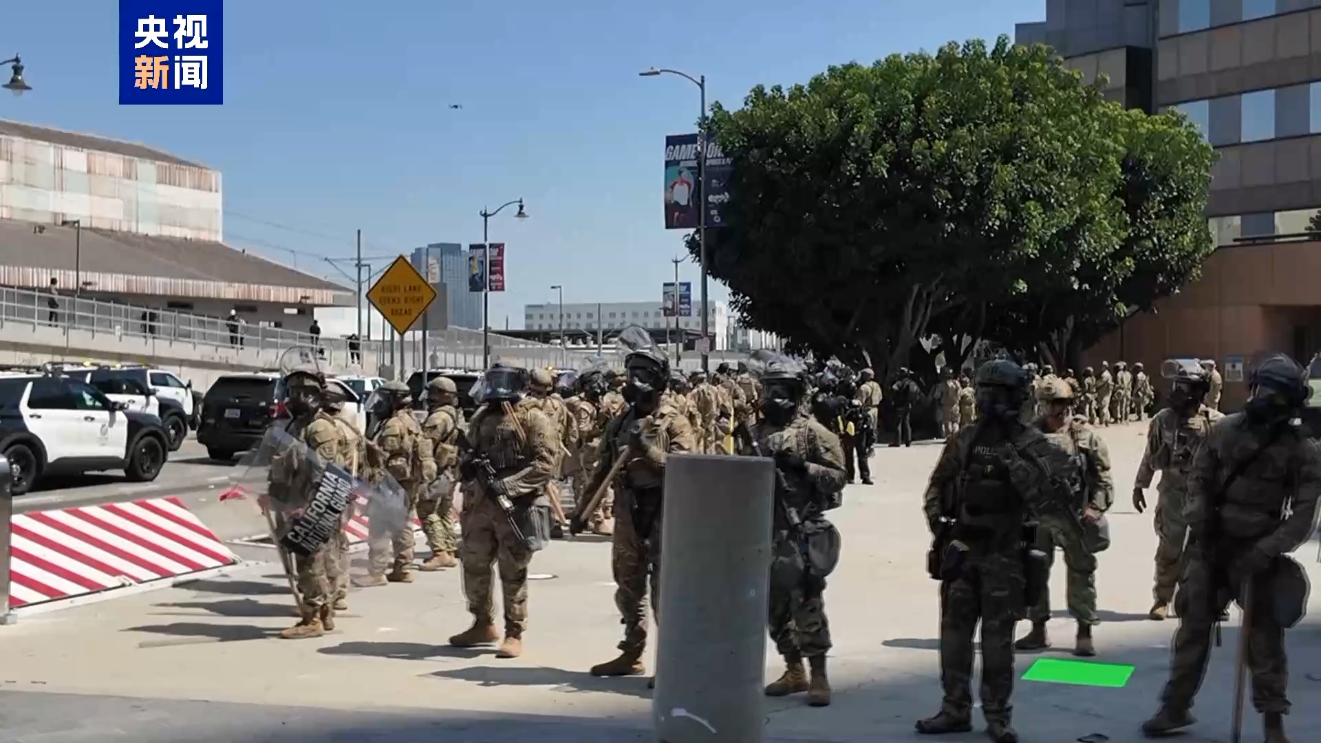 央視記者 劉驍騫:同時,美國國民警衛(wèi)隊已部署在現(xiàn)場。這些荷槍實彈穿著迷彩服的士兵就是特朗普政府部署的國民警衛(wèi)隊隊員,他們在幾個小時前,也就是當(dāng)?shù)貢r間8日上午入駐到這里。根據(jù)官方消息,目前已經(jīng)有至少300名國民警衛(wèi)隊隊員抵達(dá)洛杉磯。