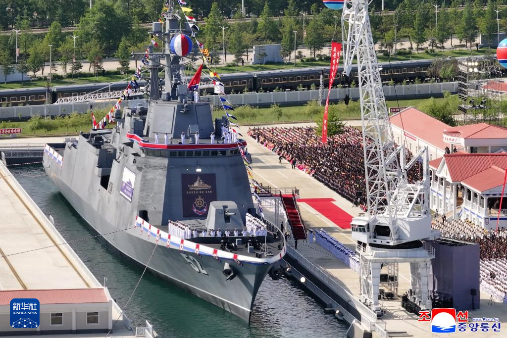 這是朝中社發(fā)布的朝鮮“崔賢”級二號艦下水儀式現(xiàn)場畫面。新華社/朝中社