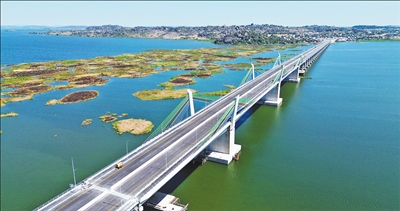 隨著坦桑尼亞總統(tǒng)哈桑揮動(dòng)國(guó)旗,示意車輛可以通行,等待駛過馬古富力大橋的首批車輛紛紛啟動(dòng)。身穿當(dāng)?shù)貍鹘y(tǒng)服飾的民眾載歌載舞,現(xiàn)場(chǎng)歡呼聲、歌聲、掌聲交織在一起……日前,由中國(guó)土木與中鐵十五局聯(lián)合承建的非洲最長(zhǎng)矮塔斜拉橋——坦桑尼亞馬古富力大橋(見圖,中國(guó)土木供圖)建成通車。橫跨維多利亞湖的馬古富力大橋如一道飛虹連通兩岸,成為中非友誼新地標(biāo)。