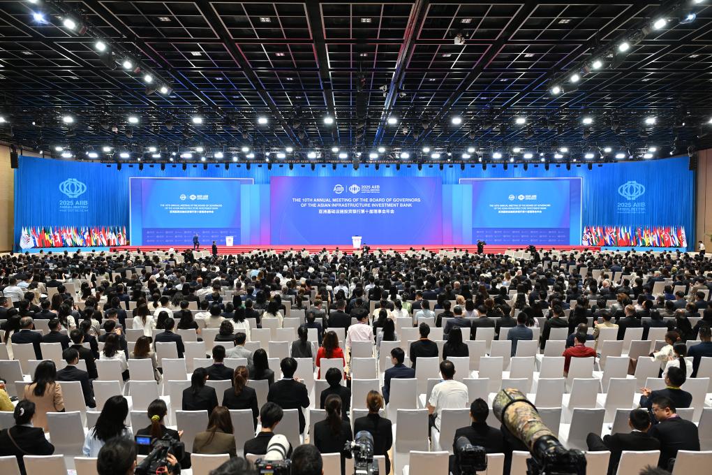 這是6月26日拍攝的亞洲基礎(chǔ)設(shè)施投資銀行第十屆理事會(huì)年會(huì)開幕式現(xiàn)場(chǎng)。新華社記者李鑫攝