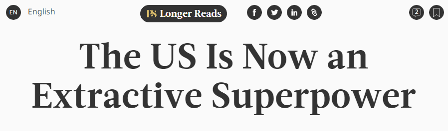 近日,世界報(bào)業(yè)辛迪加網(wǎng)站刊登一篇文章,標(biāo)題是《美國(guó)已經(jīng)成為一個(gè)榨取型的超級(jí)大國(guó)》。
