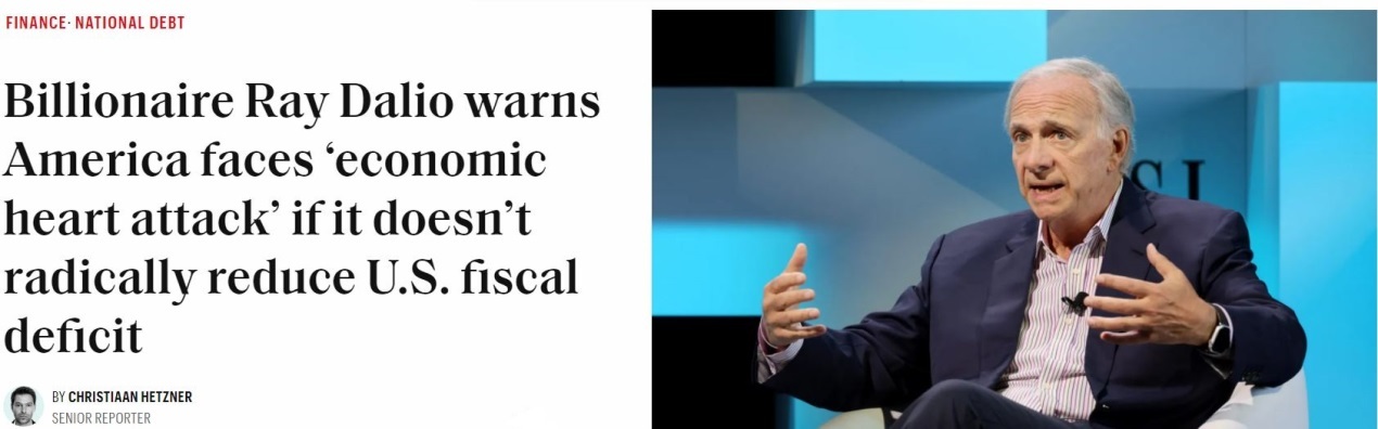 美國橋水基金創(chuàng)始人達(dá)利歐此前更是警告,如果不能有效控制財(cái)政赤字和債務(wù)規(guī)模,美國經(jīng)濟(jì)遲早會(huì)“心臟病發(fā)作”。