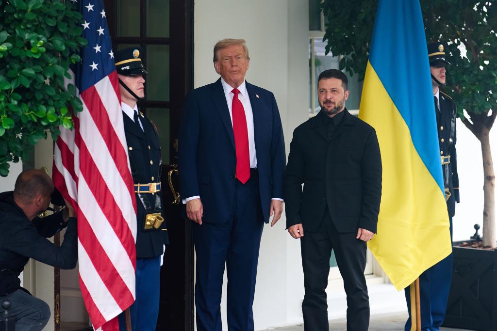 當?shù)貢r間18日下午1時許,澤連斯基的座車駛入白宮。特朗普在西翼入口迎接,雙方握手寒暄合影。而早前一個小時,北約秘書長呂特、歐盟委員會主席馮德萊恩、英國首相斯塔默、意大利總理梅洛尼、芬蘭總統(tǒng)斯圖布、德國總理默茨、法國總統(tǒng)馬克龍陸續(xù)抵達時,在門口迎接的是美國國務院禮賓司司長莫妮卡·克勞利。