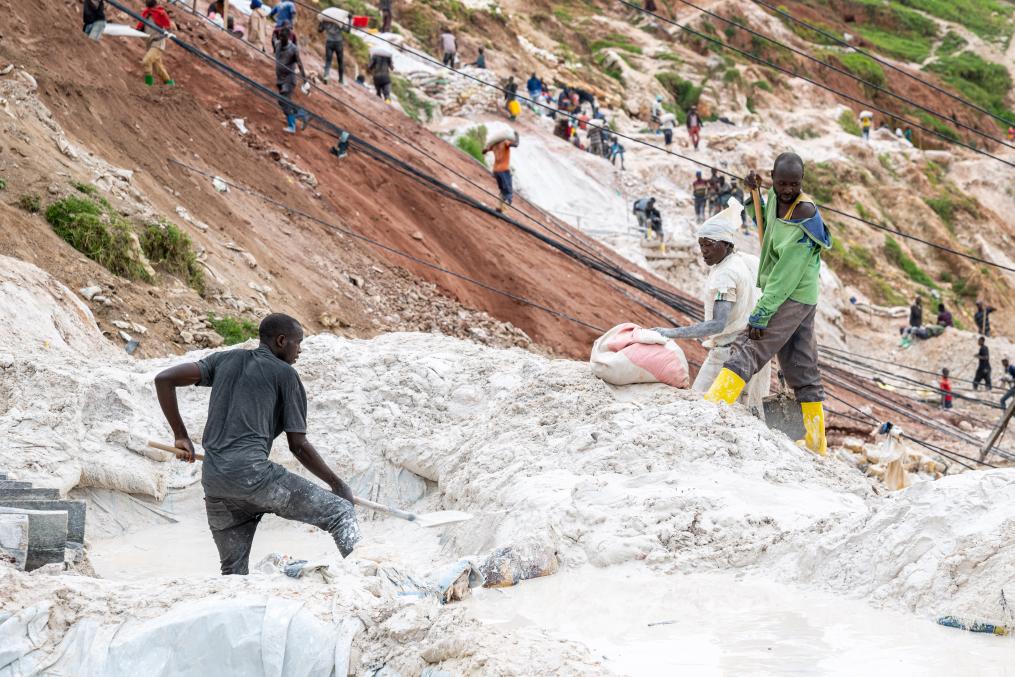 5月7日,礦工在剛果(金)東部北基伍省魯巴亞的鈳鉭礦區(qū)勞作。新華社記者鄭揚(yáng)子攝