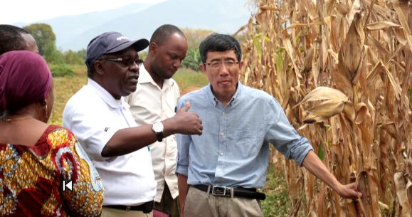 中國農(nóng)業(yè)專家在坦桑尼亞指導當?shù)厝罕娫苑N玉米