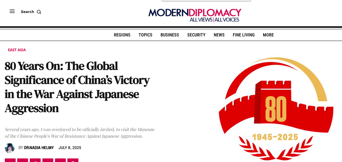 赫勒米教授在題為《80年過去:中國抗日戰(zhàn)爭(zhēng)勝利的世界意義》的文章中表示,中國抗戰(zhàn)勝利不僅是中華民族自強(qiáng)不息的壯舉,更為世界反法西斯戰(zhàn)爭(zhēng)勝利作出巨大貢獻(xiàn),中國所作的犧牲應(yīng)當(dāng)為全世界所銘記。