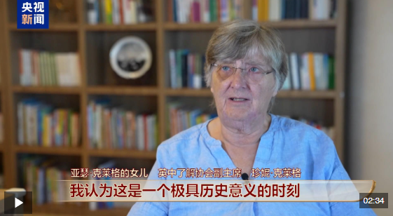 英中了解協(xié)會副主席珍妮·克萊格是亞瑟·克萊格的女兒。她的父親1937年在英國成立“英國援助中國運動委員會”,旨在促進與中國團結一致抗擊日本侵略。