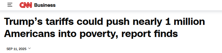 美國有線電視新聞網(wǎng)(CNN)11日報(bào)道指出,特朗普政府的關(guān)稅政策在推高聯(lián)邦收入的同時(shí),恐導(dǎo)致顯著的社會成本。耶魯大學(xué)預(yù)算實(shí)驗(yàn)室最新分析顯示,這一系列政策或使近百萬美國人陷入貧困。