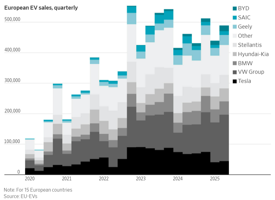 《華爾街日報》9月17日發(fā)表文章稱,在電動汽車領域,“中國制造”的足跡在不斷擴大,目前已占全球電動汽車銷量的一半以上。