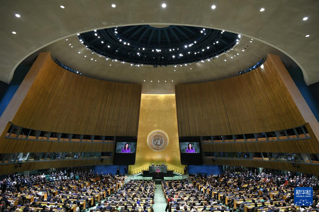 9月23日,在位于紐約的聯(lián)合國(guó)總部,第80屆聯(lián)大主席貝爾伯克(中)主持第80屆聯(lián)合國(guó)大會(huì)一般性辯論開幕式。新華社記者吳曉凌攝