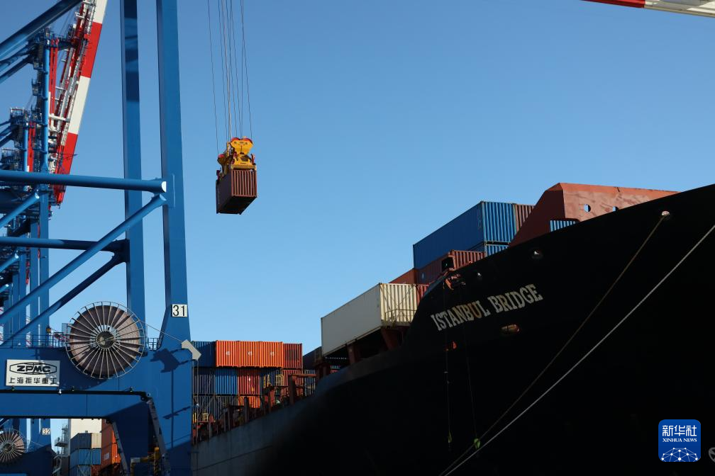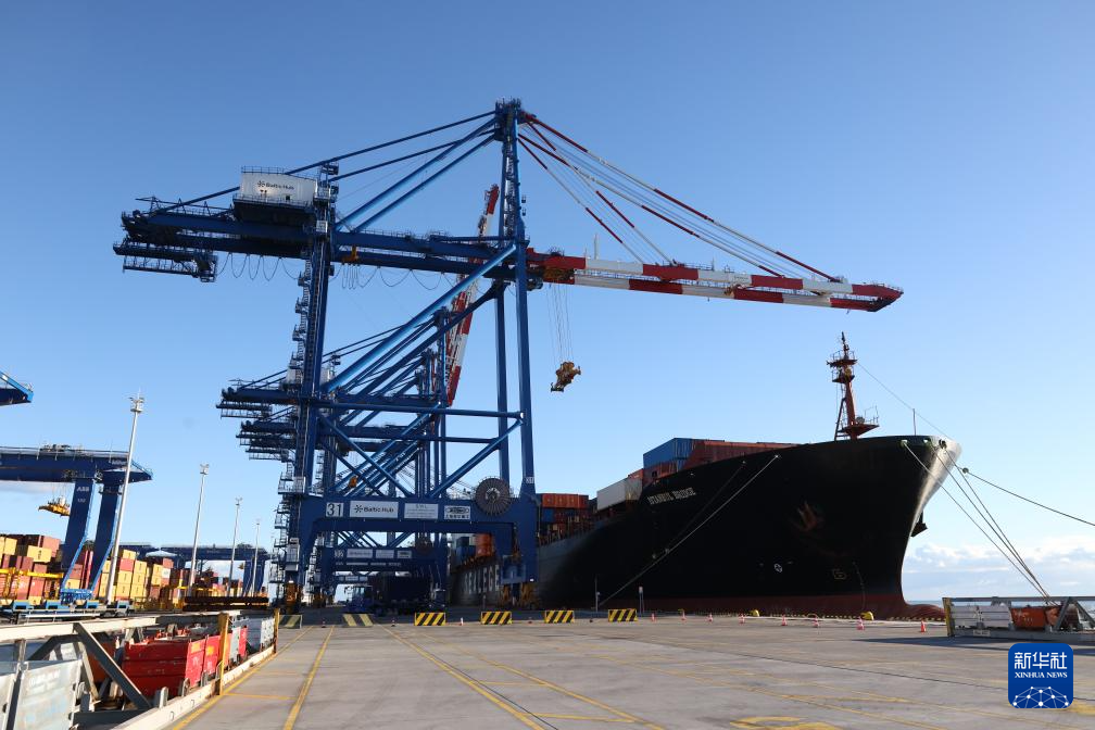 10月19日,在波蘭北部格但斯克港,從中國寧波舟山港出發(fā)的中歐北極快航航線首艘貨船進(jìn)行裝卸工作。新華社記者 崔力 攝