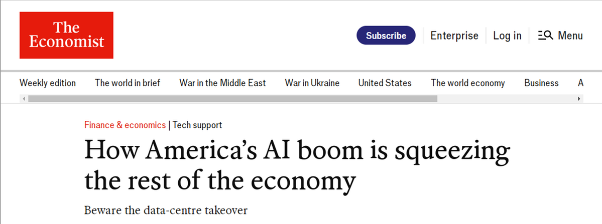 英國《經(jīng)濟(jì)學(xué)人》雜志近期評論指出,除了人工智能之外,美國經(jīng)濟(jì)的大部分領(lǐng)域似乎都顯得低迷。AI爆發(fā)式增長雖能“美化”數(shù)字,卻忽略了美國實體經(jīng)濟(jì)的空心化,導(dǎo)致GDP含金量低。