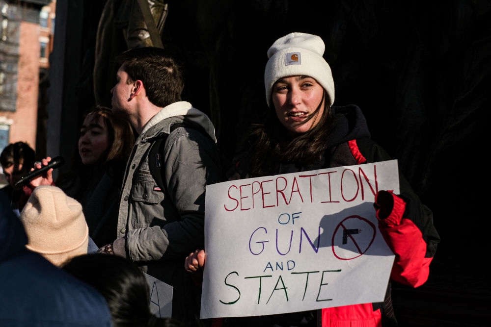 2023年2月24日,在美國馬薩諸塞州波士頓,當(dāng)?shù)貙W(xué)生參加反槍支暴力集會(huì)。新華社發(fā)(朱子于攝)