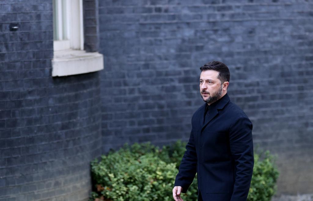 10月24日,在英國倫敦,烏克蘭總統(tǒng)澤連斯基走向唐寧街10號(hào)首相府。新華社記者李穎攝