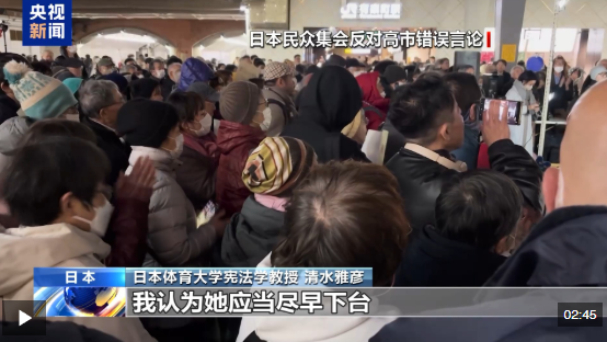 日本體育大學(xué)憲法學(xué)教授 清水雅彥:高市的相關(guān)發(fā)言無論從日本安保法案,還是《聯(lián)合國憲章》的角度來看,都存在嚴重問題。從這個意義上講,高市早苗否定《中日聯(lián)合聲明》,無視法律并且暴露自身無知,是東亞地區(qū)的不穩(wěn)定因素。因此,她的那番發(fā)言應(yīng)撤回,如果無法撤回,我認為她應(yīng)當盡早下臺。