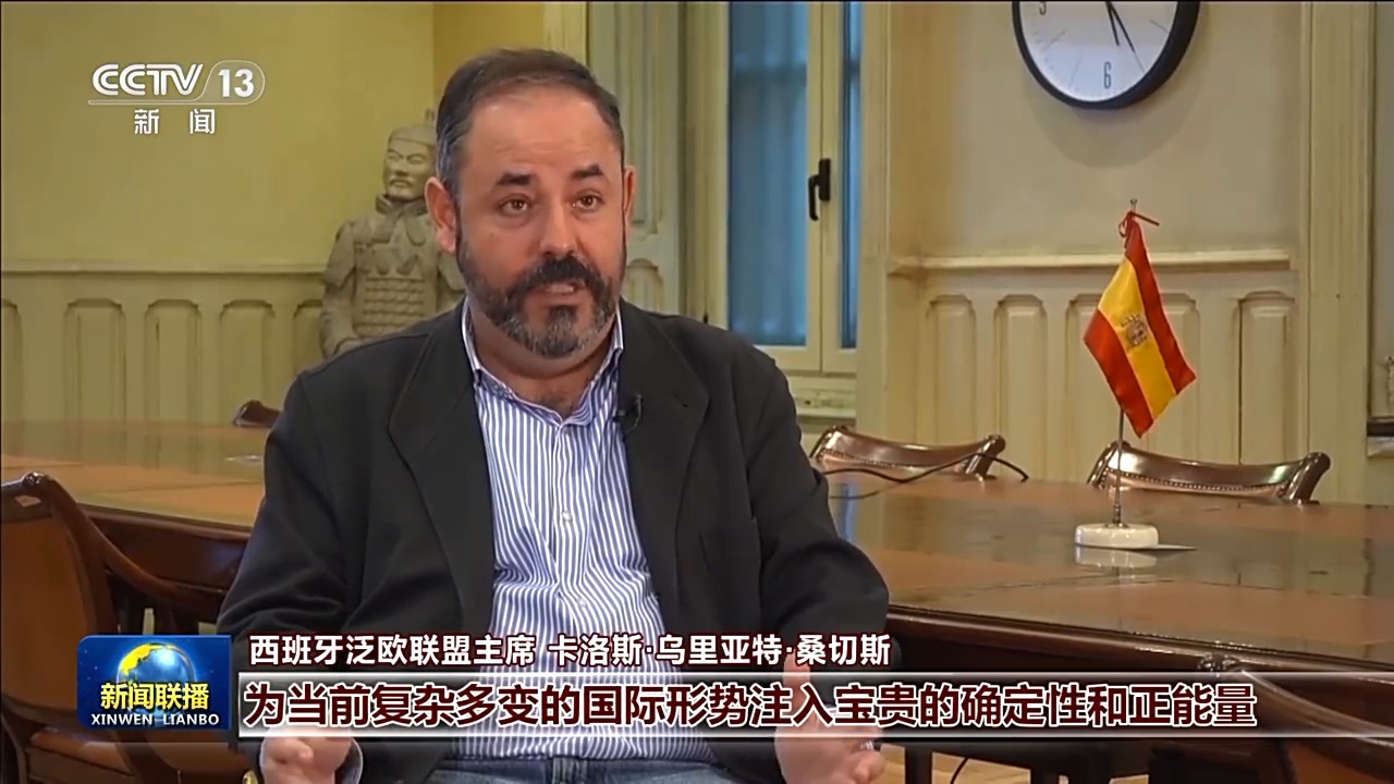 西班牙泛歐聯(lián)盟主席 卡洛斯·烏里亞特·桑切斯:習(xí)近平主席發(fā)表的新年賀詞為當(dāng)前復(fù)雜多變的國際形勢注入寶貴的確定性和正能量,習(xí)主席提出的一系列全球倡議立足于造福全人類。中國還積極應(yīng)對氣候變化,在可持續(xù)發(fā)展方面為世界提供了重要借鑒。中國堅持合作共贏的理念,讓中國的發(fā)展成果惠及更多國家和人民。