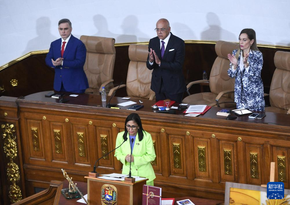 1月15日,在委內(nèi)瑞拉首都加拉加斯,委內(nèi)瑞拉代總統(tǒng)德爾西·羅德里格斯發(fā)表國(guó)情咨文。新華社發(fā)(馬科斯·薩爾加多攝)