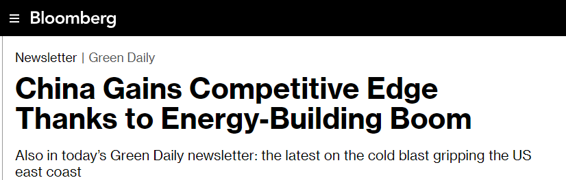 美國(guó)彭博社網(wǎng)站28日發(fā)表題為《中國(guó)憑借能源建設(shè)熱潮獲得競(jìng)爭(zhēng)優(yōu)勢(shì)》的文章。