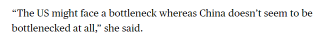 文章同時(shí)提到,相比之下,美國(guó)在幾十年前電力需求似乎趨于平穩(wěn)后,新增裝機(jī)速度一直較慢。如今,隨著人工智能的迅猛發(fā)展,美國(guó)正艱難應(yīng)對(duì)數(shù)據(jù)中心等高耗能行業(yè)的電力需求,導(dǎo)致電力市場(chǎng)極為緊張。文章援引業(yè)內(nèi)人士的話說(shuō):“美國(guó)可能會(huì)面臨瓶頸,而中國(guó)似乎完全沒(méi)有瓶頸。”