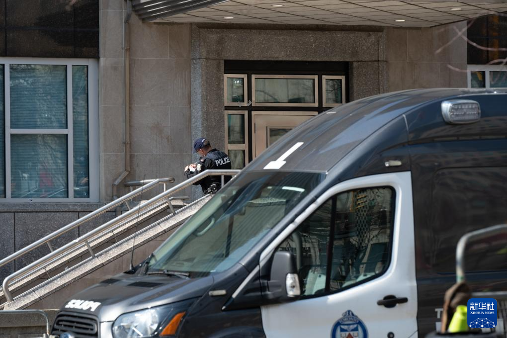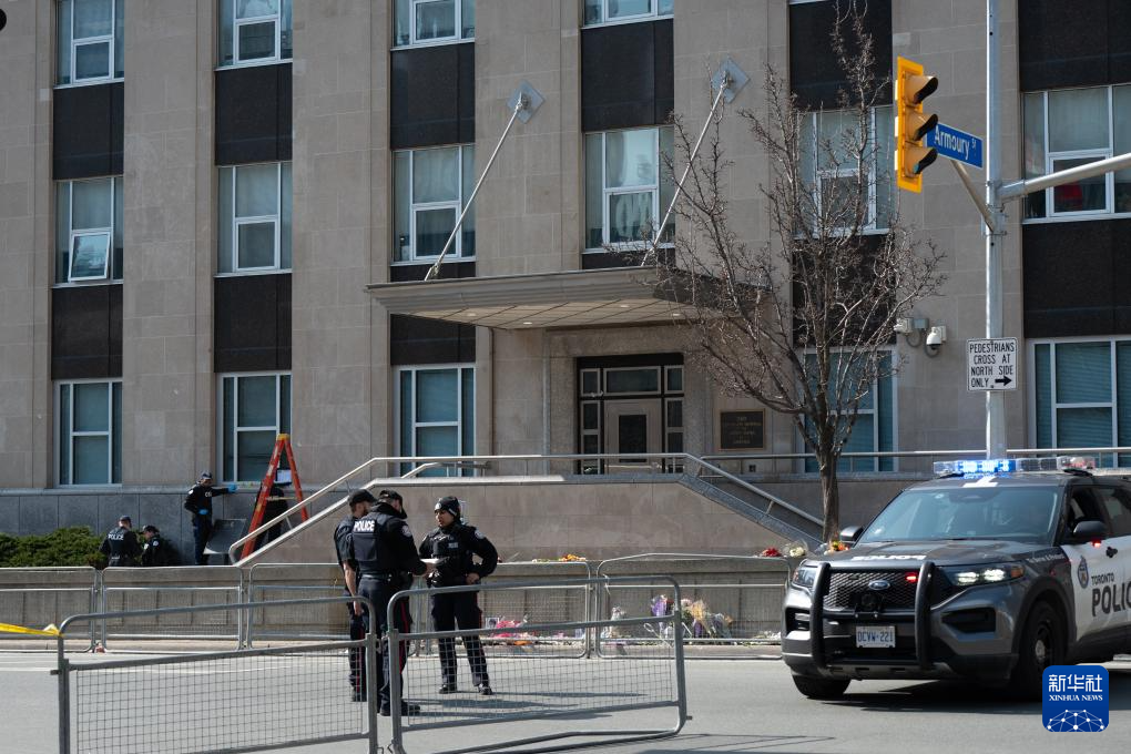 3月10日,警察在加拿大多倫多的美國駐多倫多總領(lǐng)館外工作。新華社發(fā)(李海濤攝)