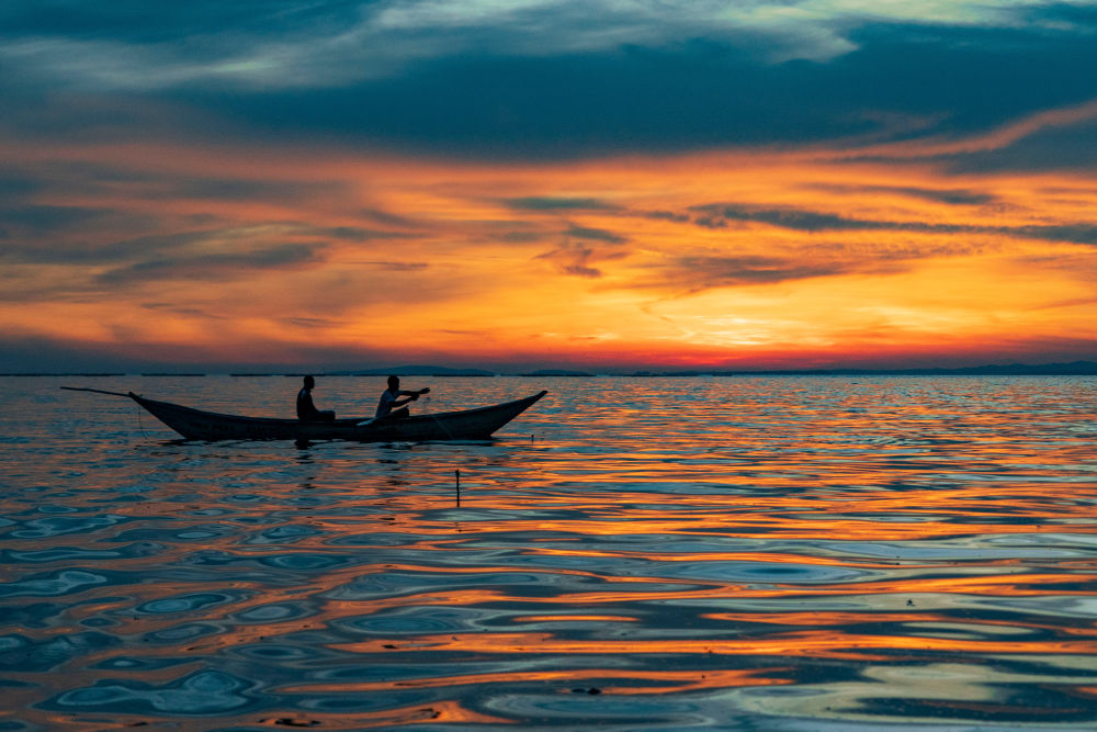 在肯尼亞基蘇木,漁民于日落時(shí)分駕船在維多利亞湖上捕魚(yú)(2026年2月27日攝)。