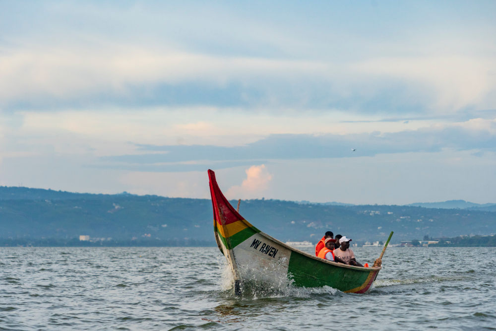 在肯尼亞基蘇木,人們乘船在維多利亞湖上游玩(2026年2月27日攝)。