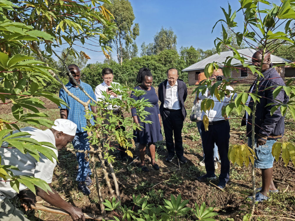 中方專家在維多利亞湖區(qū)考察當(dāng)?shù)鼐G色農(nóng)作物的種植情況(2024年8月27日攝)。