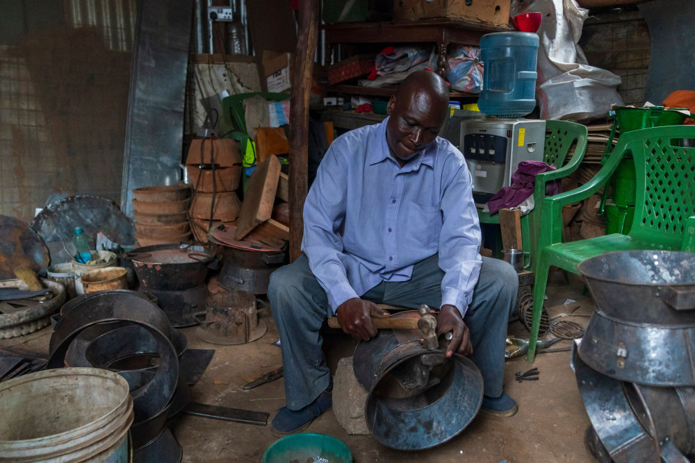 在維多利亞湖畔的肯尼亞基蘇木,商家制作陶土爐灶的金屬外殼(2026年2月28日攝)。這種清潔爐灶的制作原料取自非洲當(dāng)?shù)?,工藝?jiǎn)單。
