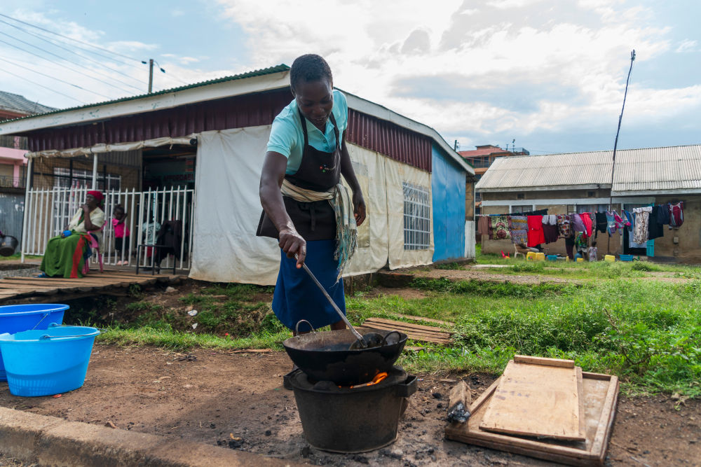 在維多利亞湖畔的肯尼亞基蘇木,當(dāng)?shù)鼐用裼锰胀翣t灶做飯(2026年2月28日攝)。
