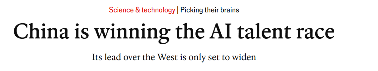 英國《經(jīng)濟(jì)學(xué)人》雜志網(wǎng)站近日發(fā)表題為《中國正贏得人工智能人才競(jìng)賽》的文章。文章認(rèn)為,中國領(lǐng)先于西方國家的人才優(yōu)勢(shì)正在擴(kuò)大。