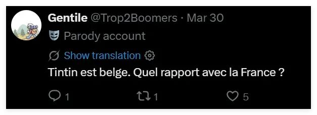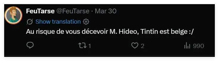 從鈴木發(fā)布的帖文來看,雖然他的評論區(qū)里有法國網(wǎng)民在為他的這番模仿秀叫好,但也有比利時(shí)等國的網(wǎng)民強(qiáng)調(diào)說,丁丁是比利時(shí)人,不是法國人。