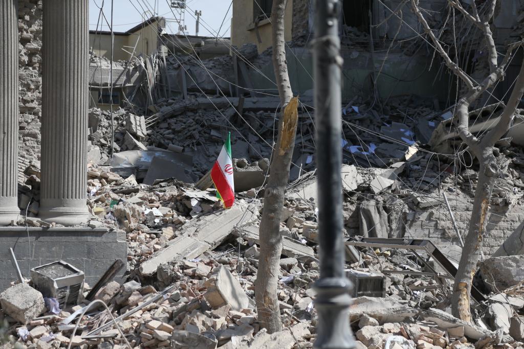 這是2026年3月4日在伊朗德黑蘭革命廣場附近拍攝的一處損毀的建筑。新華社記者沙達提攝
