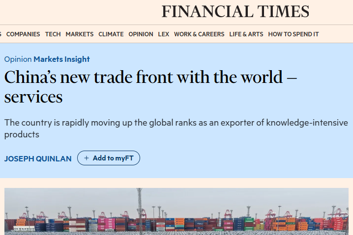 《金融時(shí)報(bào)》認(rèn)為,中國外貿(mào)結(jié)構(gòu)正在出現(xiàn)新的變化。與過去更多依靠商品出口相比,技術(shù)、數(shù)字系統(tǒng)和配套服務(wù)在對外貿(mào)易中的比重正逐步上升。文章認(rèn)為,隨著中國科技龍頭企業(yè)持續(xù)被看好,更多中國企業(yè)加快融入全球知識密集型貿(mào)易,有望進(jìn)一步拓展增長空間。