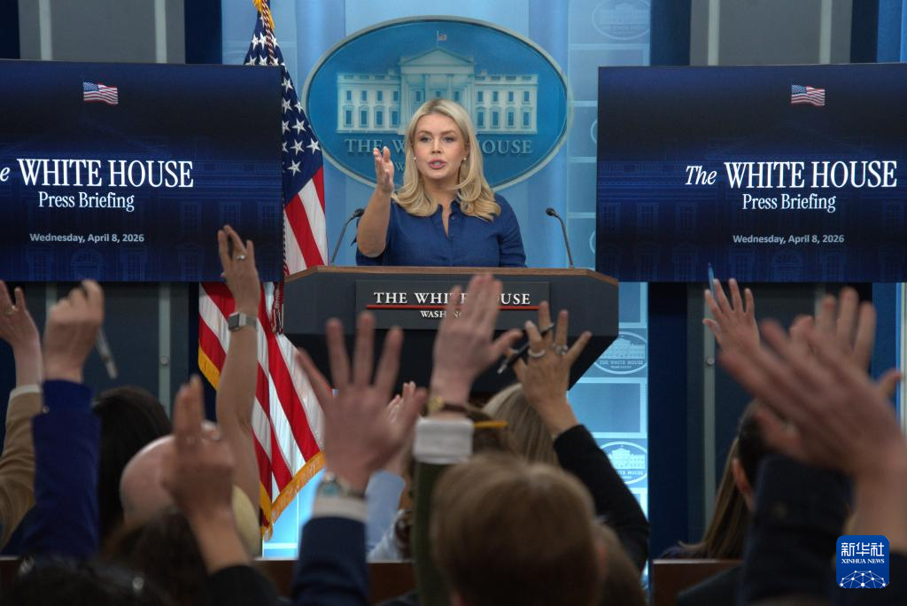 4月8日,在美國首都華盛頓白宮,白宮新聞秘書萊維特出席記者會(huì)。新華社發(fā)(李源清攝)