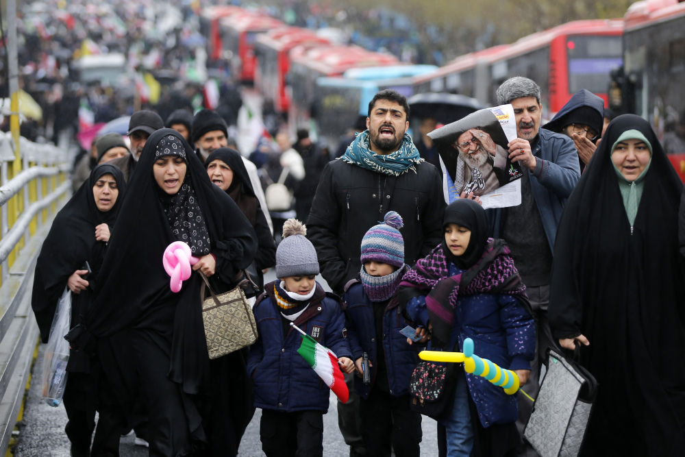 3月13日,人們在伊朗首都德黑蘭參加集會。(沙達提 攝)