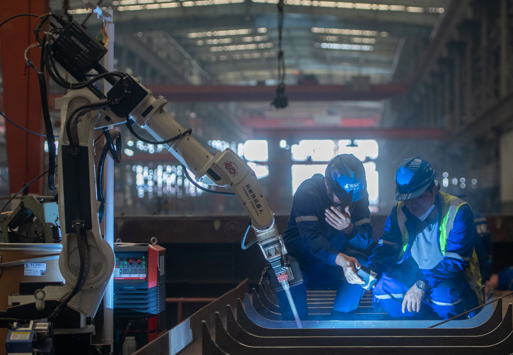 2024年5月16日,在湖北省武漢市武昌造船生產(chǎn)車間,工作人員在查看焊接機(jī)器人焊接的焊縫成型。近年來,武昌船舶重工集團(tuán)有限公司圍繞新型公務(wù)船、高端海工船、中小型綠色智能油化船和支線集裝箱船等主建船型,積極推進(jìn)數(shù)字化轉(zhuǎn)型與智能制造,助力航運(yùn)高質(zhì)量發(fā)展。