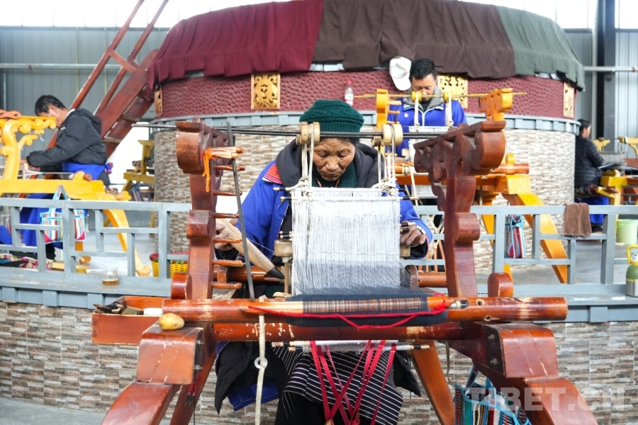 資料圖:西藏山南市乃東區(qū)民族嘩嘰手工編織專業(yè)合作社的廠房中,員工正在編織 攝影:張藝彤