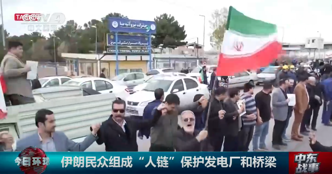 在特朗普發(fā)布極端威脅聲明后,伊朗民眾組成“人鏈”保護(hù)發(fā)電廠和橋梁 圖:央視新聞