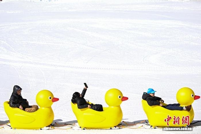 1月29日,游客乘坐“大黃鴨”賞雪。中新社記者 李嘉嫻 攝