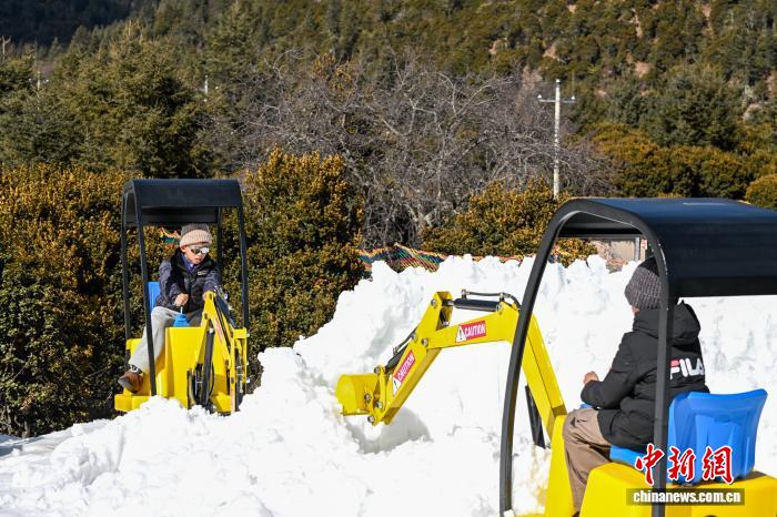 1月29日,小朋友體驗雪地小挖機。中新社記者 李嘉嫻 攝