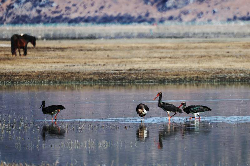 2月2日是第30個“世界濕地日”。在云南省迪慶藏族自治州香格里拉的納帕海濕地,一幅生動的生態(tài)畫卷正在展開:成群的黑頸鶴與黑鸛在淺水區(qū)悠然覓食,各類野鴨在湖中巡游,斑頭雁劃過長空。