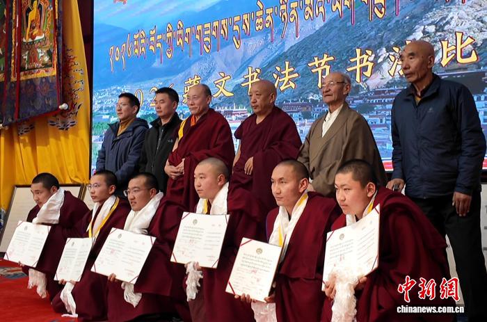 西藏佛學(xué)院色拉寺分院28日舉辦2026藏文書法節(jié)書法比賽頒獎儀式。西藏自治區(qū)書法協(xié)會多位藏文書法家、色拉寺僧人、管委會干部等300余人齊聚一堂,共同參與這場文化盛會。
