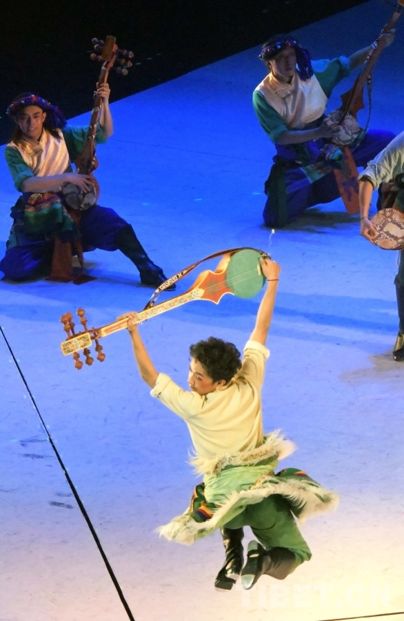 “跟愛爾蘭踢踏舞不一樣,愛爾蘭踢踏舞主要看腳下功夫,上半身基本不動,而藏族踢踏舞則調(diào)動了更多身體部位,全身聯(lián)動,腳下技巧一個要求‘快、密、準(zhǔn)’,一個要求‘沉、厚、活’。”旦增羅布介紹道。藏族踢踏舞表演過程中通常需要同時完成舞蹈、彈奏扎念琴和演唱,實現(xiàn)歌舞、演唱、彈奏“三合一體”,這意味著對演員綜合能力有更高要求。