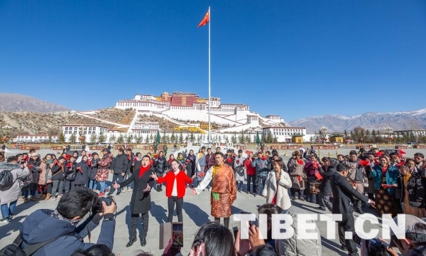 布達(dá)拉宮廣場(chǎng)上演快閃祝福祖國(guó)70華誕