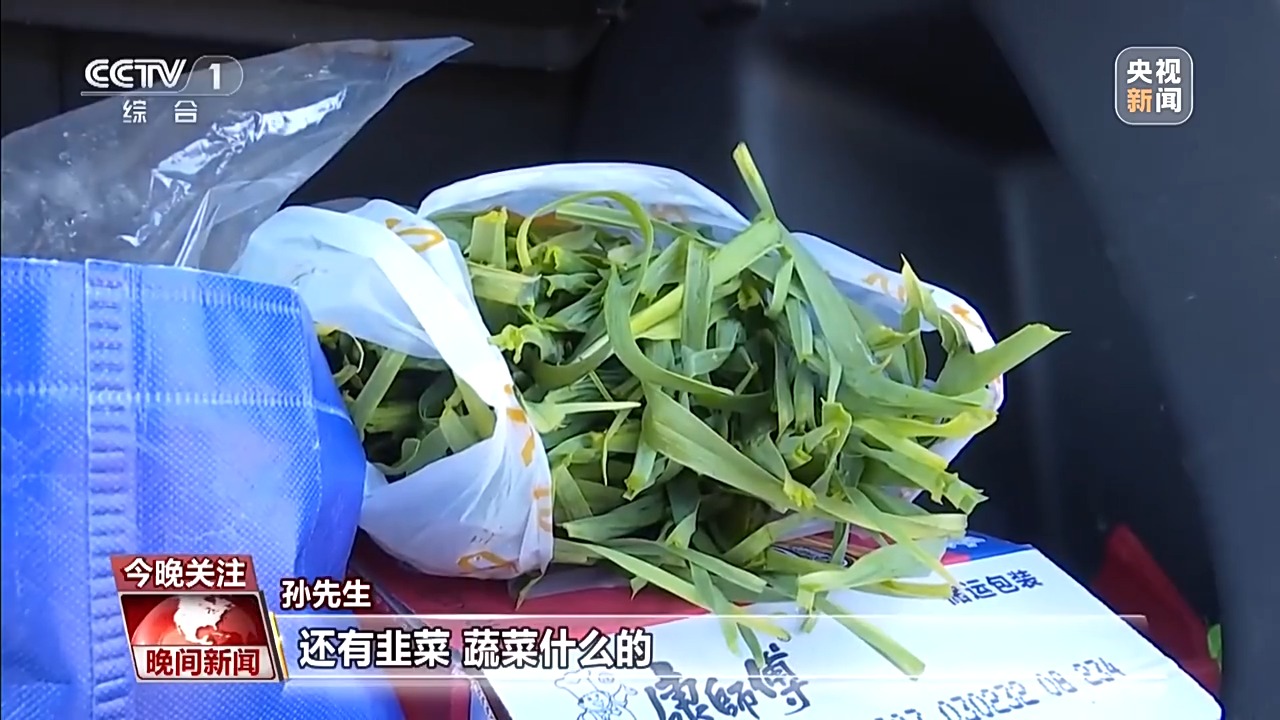 孫先生:我爸媽也是從老家?guī)Я艘恍╇u蛋、雞肉,還有韭菜、蔬菜什么的。其實這東西,哪都能買到,但是爸媽還是不放心。即便是現(xiàn)在三十幾歲了,但是爸媽還是對我們像小孩一樣溫馨。