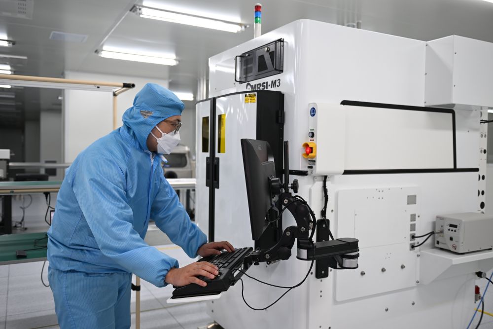 3月28日,在雄安科創(chuàng)中心中試基地,芯聯(lián)新(河北雄安)科技有限公司工作人員在調(diào)試芯片生產(chǎn)設(shè)備。新華社記者 牟宇 攝