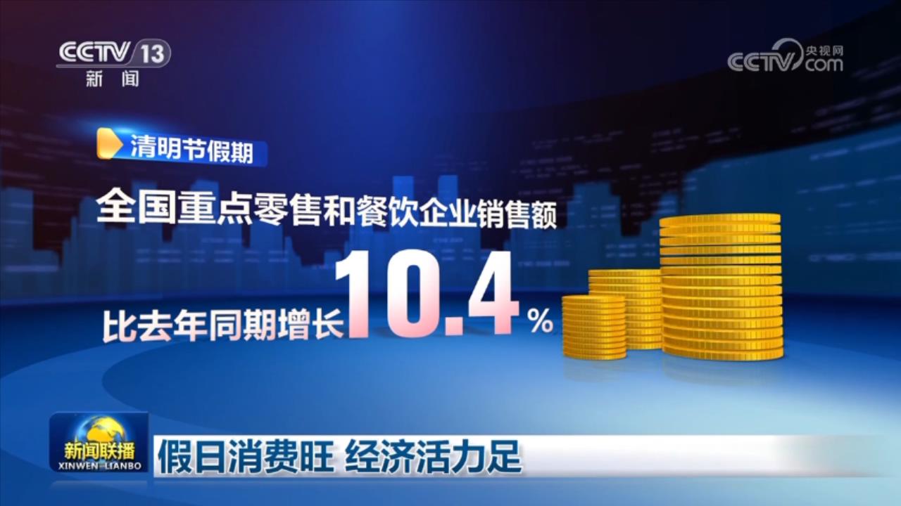 商務(wù)部商務(wù)大數(shù)據(jù)監(jiān)測顯示,清明節(jié)假期,全國重點零售和餐飲企業(yè)銷售額比去年同期增長10.4%。商品消費方面,綠色有機(jī)食品、服裝、家電、通訊器材等銷售額同比增長都超過10%,全國示范步行街客流量和銷售額同比增長也都超過五成。