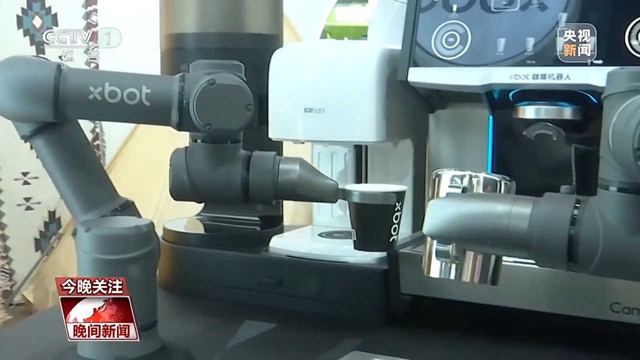 海南臺記者 張賀霄:在消博會上,如果您口渴了,還可以隨時隨地喝到一杯香醇濃厚的咖啡。在我身旁,就是一臺智能咖啡機器人,它75秒就可以出一杯高品質咖啡,不僅如此,這臺機器人還有AI學習功能,而它也是首次在海南亮相。