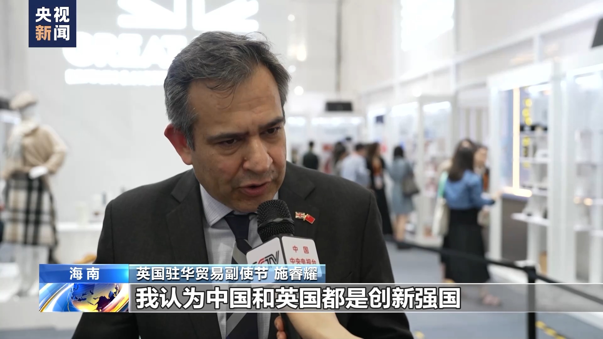 英國駐華貿(mào)易副使節(jié) 施睿耀:我認為中國和英國都是創(chuàng)新強國,兩國在該領(lǐng)域合作一直很好。我們鼓勵我們的企業(yè)在綠色、可持續(xù)和低碳領(lǐng)域,與中國同行密切合作、開發(fā)新產(chǎn)品。