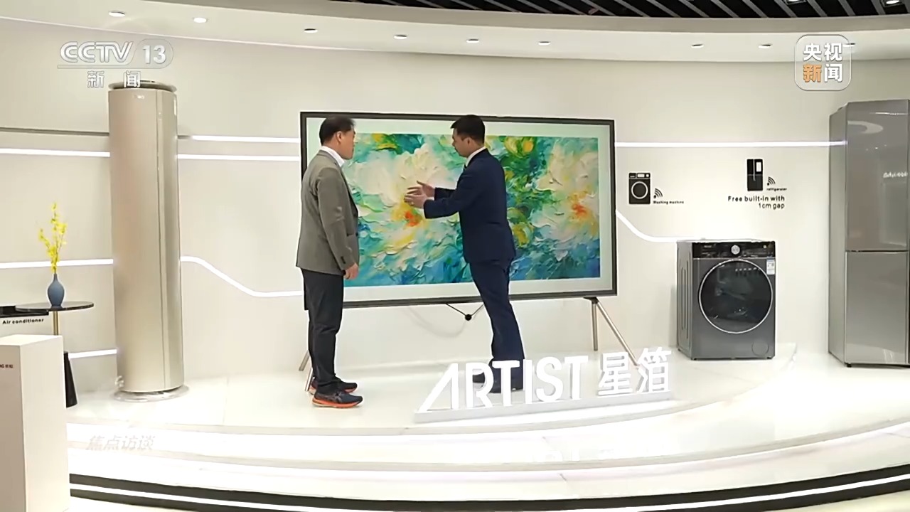 為了實現(xiàn)國際化戰(zhàn)略,長虹在距離廣州一小時車程的中山市專門建立了一個出口基地,用前店后廠的模式加快向海外出口。一走進展廳,記者首先就被一款115寸的巨幅電視吸引。它不僅大,而且聰明,內(nèi)置了人工智能大模型,記者體驗了一下它的AI繪畫功能。